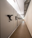 Разработали индивидуальный проект расстановки стеллажей. Разместили передвижные стеллажи с механическим и электро приводом и фальшполом.
