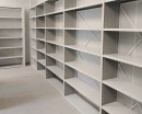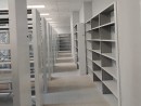 Максимальное использование пространства за счёт стационарных стеллажей вдоль стен и в центре помещения.