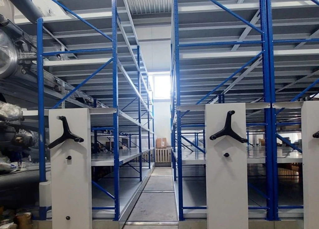 Мобильные складские стеллажи выдерживают вес до 350 кг на каждую полку. Эти металлические стеллажи идеально подходят для хранения тяжелых предметов или поддонов. Экономят площади склада или цеха и повышают удобство и эффективность работы с грузами.