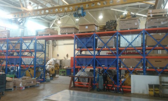 Для хранения больших объемов малогабаритной, но тяжелой оснастки, установлены стеллажи Slide с разным количеством полок в каждой секции. Расстояние (просвет) между полками подобрано таким образом, чтобы на каждый стеллаж вошло как можно больше штампов при минимальных потерях полезного пространства.
